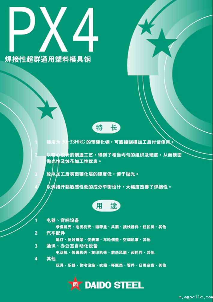 日本大同PX4塑料雷竞技raybetDota2比分:通用预硬钢(30HRC)